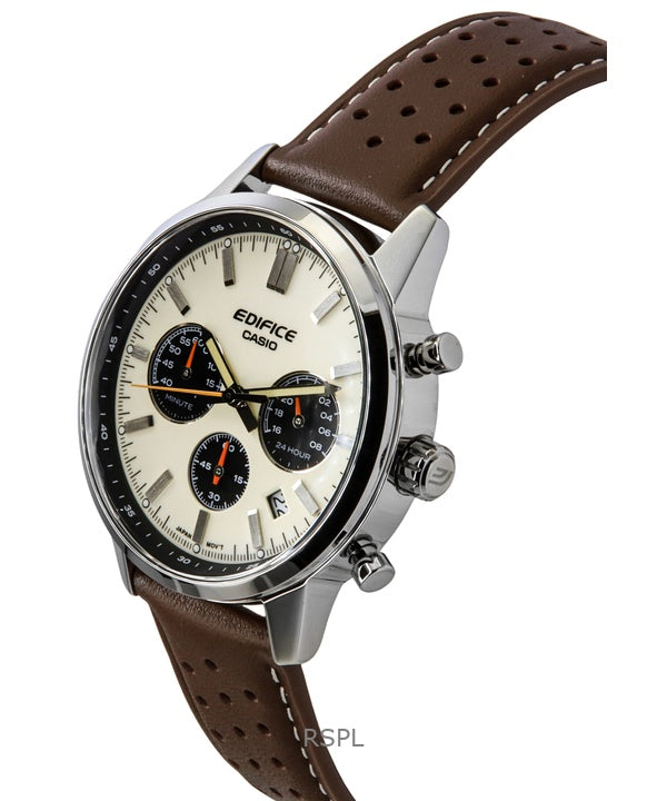 Casio Edifice Analog Chronograph Leather Strap Cream Dial Quartz EFR-575L-7A 100M Men's Watch
