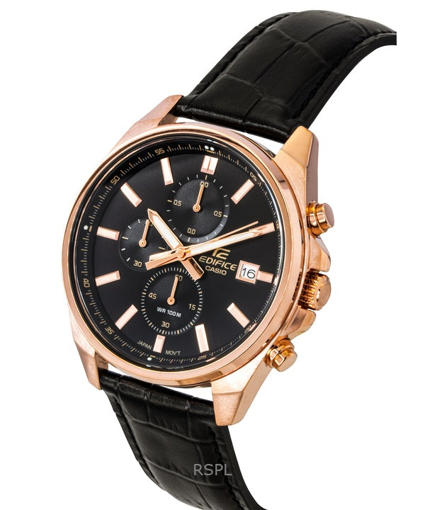 Casio Edifice Analog Standard Chronograph Leather Strap Black Dial Quartz EFV-610ECL-1A 100M Men's Watch