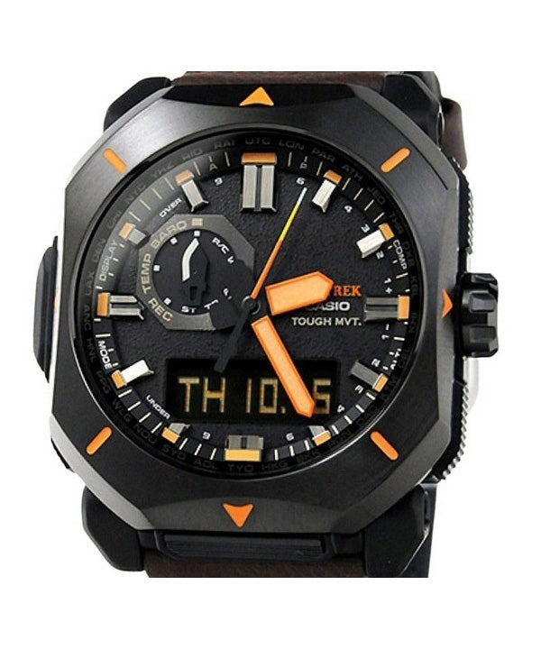 Casio ProTrek Analog Digital Brown Leather Strap Grey Dial Tough Solar PRW-6900YL-5 100M Men's Watch