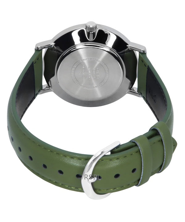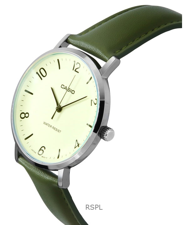 Casio Standard Analog Green Leather Strap White Dial Quartz MTP-VT03L-7B Men's Watch