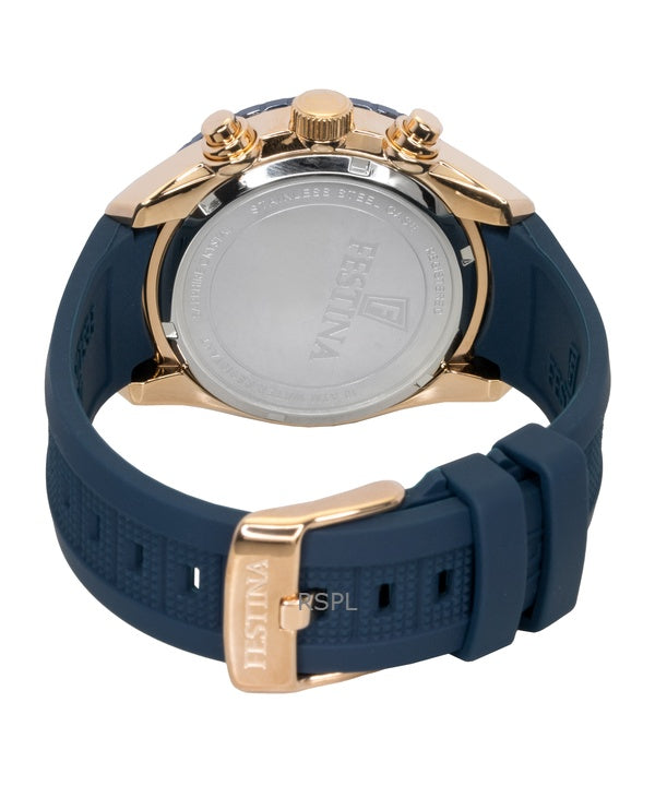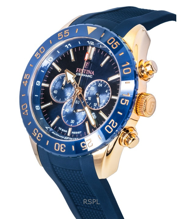 Festina Ceramic Chronograph Rubber Strap Blue Dial Quartz F20516-1 100M Men's Watch