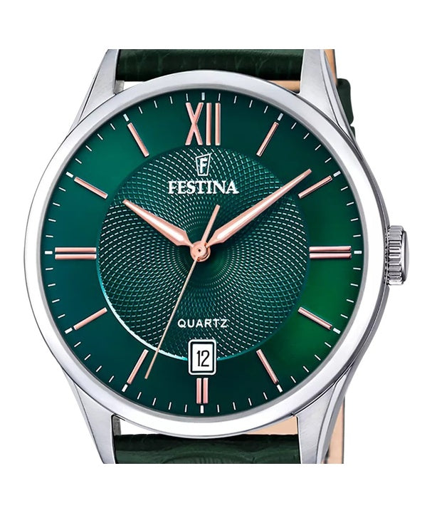 Festina Classics Leather Strap Green Dial Quartz F20426-7 Men's Watch