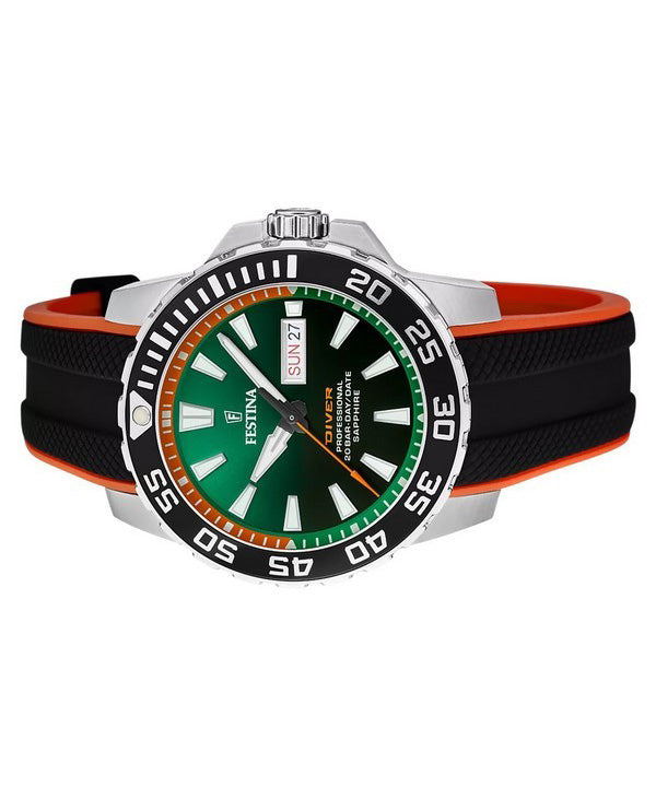 Festina The Originals Rubber Strap Green Dial Quartz Diver's F20662-2 200M Men's Watch