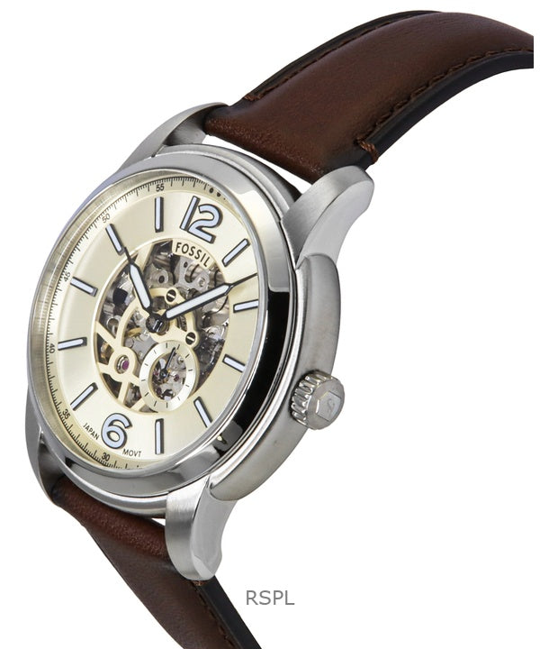 Fossil Heritage Brown Leather Strap Cream Skeleton Dial Automatic ME3264 Men's Watch