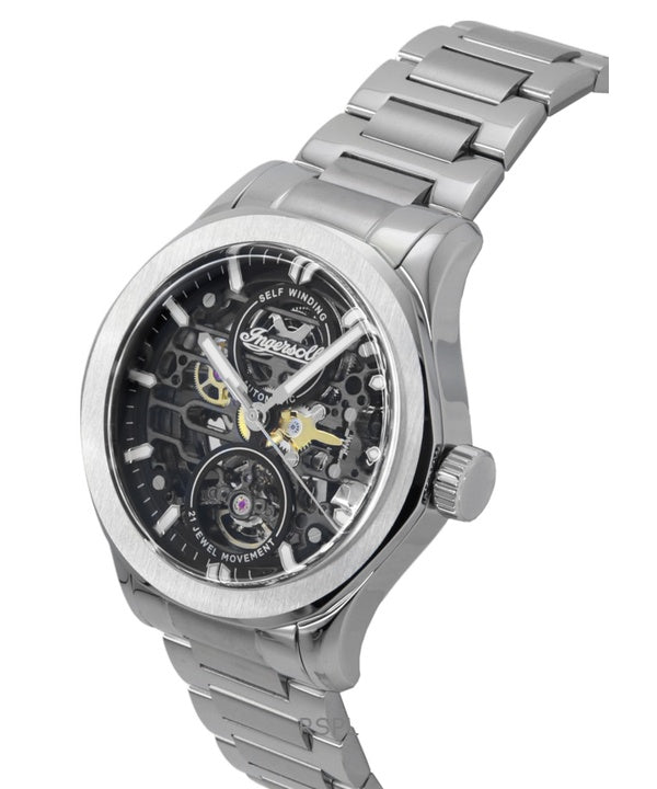 Ingersoll The Bronc Stainless Steel Black Skeleton Dial Automatic I16701 Men's Watch