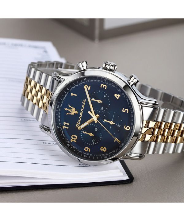 Maserati Epoca Limited Edition Chronograph Two Tone Stainless Steel Blue Dial Quartz R8873618030 100M Men's Watch
