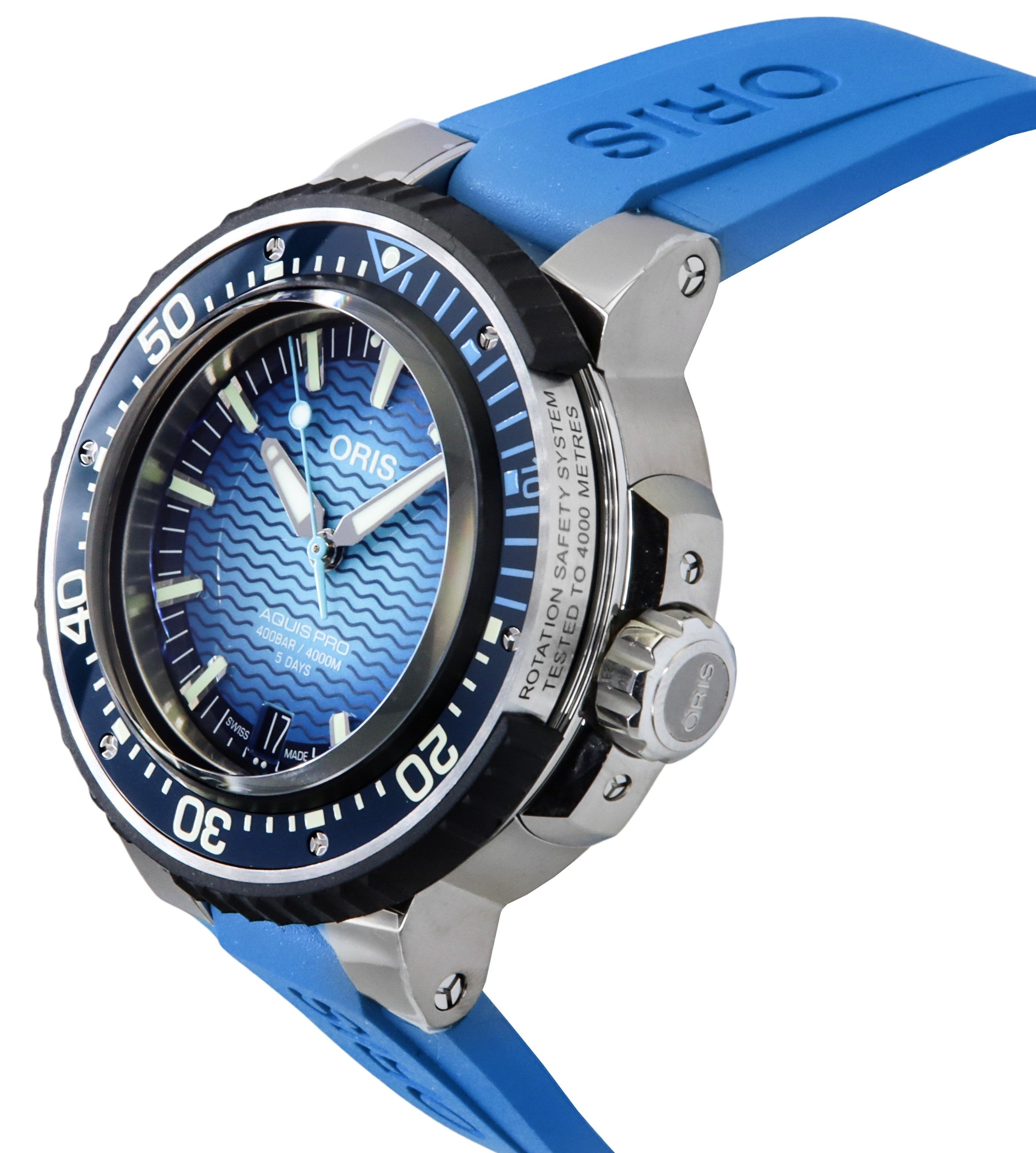 Oris Aquis Pro Rubber Strap Blue Dial Automatic Diver's 01-400-7777-7155-Set 4000M Men's Watch