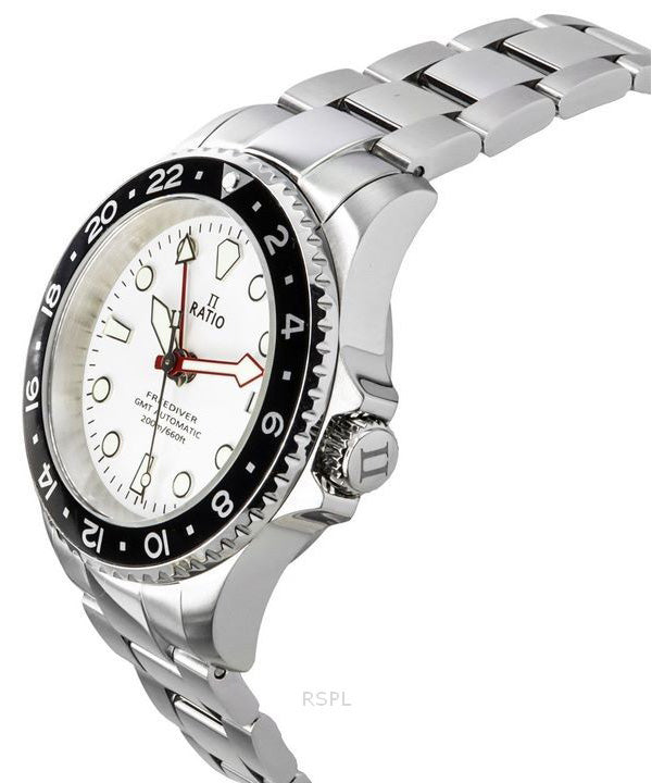 Ratio FreeDiver GMT Series Sapphire Stainless Steel White Dial Automatic RTF057 200M Men's Watch