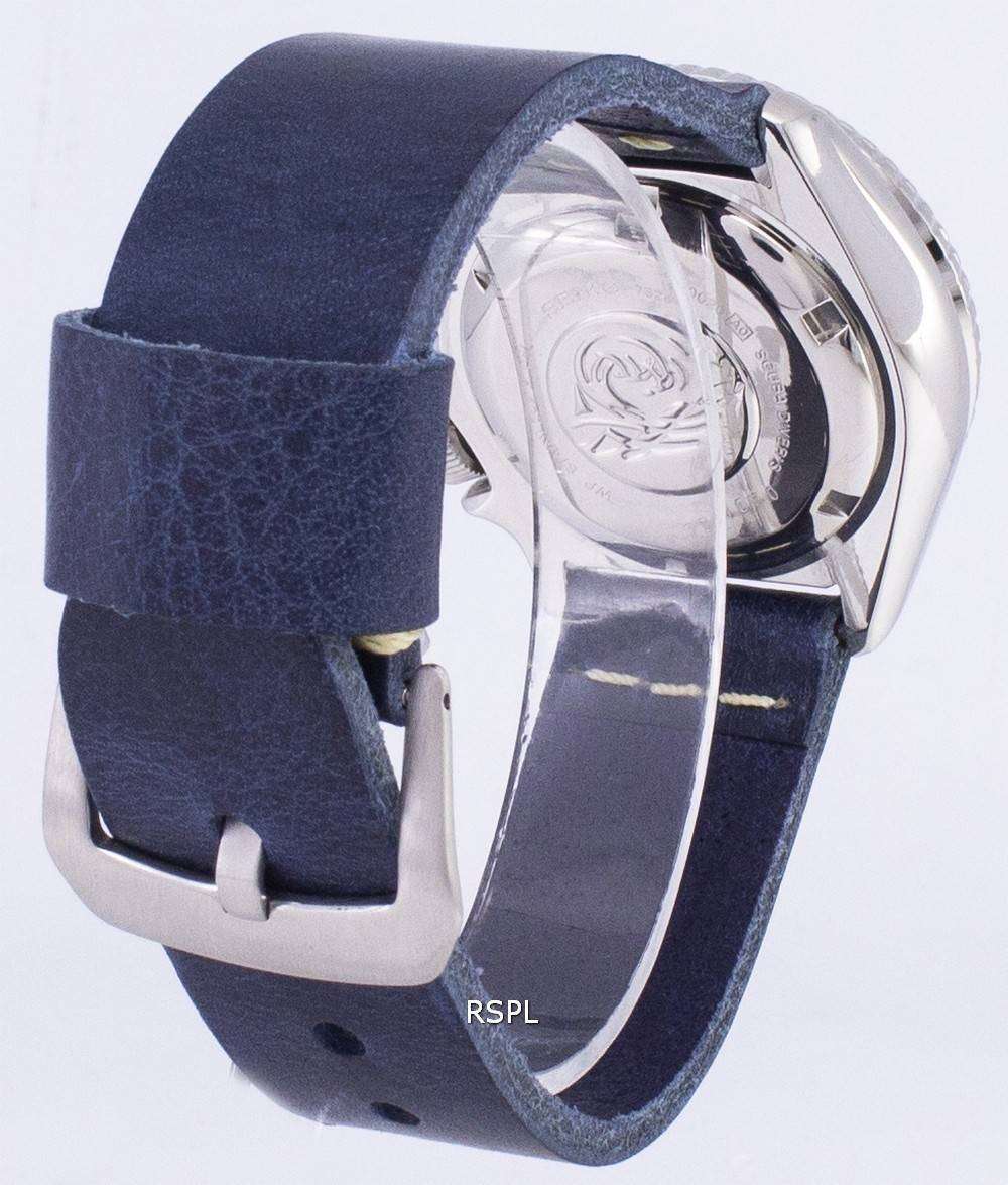 Seiko Automatic SKX009K1-LS15 Diver's 200M Dark Blue Leather Strap Men's Watch