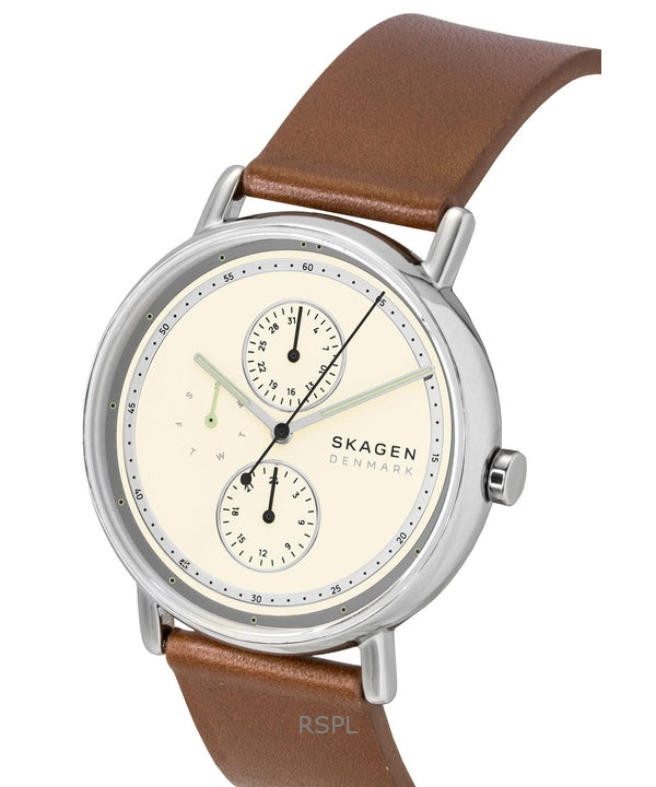 Skagen Signatur Leather Strap Multifunction Cream Dial Quartz SKW6942 Men's Watch
