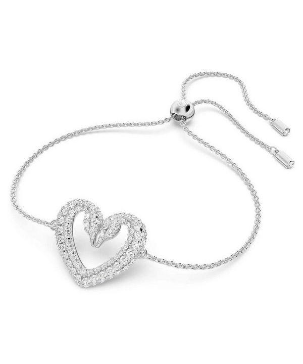 Swarovski Una Rhodium Plated Swan Neck Heart Bracelet With Clear Crystal 5625534 For Women