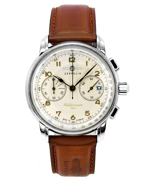 Zeppelin Mediterranee Chronograph Leather Strap Beige Dial Quartz 96705 Men's Watch